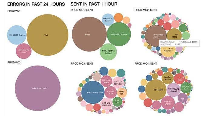 - Combine outbound proactive alerting with a historical dashboard view of an interface processing instance(s) or interface level behavior in regards to message volumes, error rates, and queuing behavior. This “look back” opportunity on recent interface behavior, combined with a proactive alert, gives your engineers exactly the information they need, when they need it.